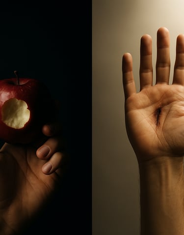 So when the woman saw that the tree was good for food, and that it was a delight to the eyes, and that the tree was to be desired to make one wise, she took of its fruit and ate, and she also gave some to her husband who was with her, and he ate. Then the eyes of both were opened, and they knew that they were naked. And they sewed fig leaves together and made themselves loincloths. Genesis 3:6-7 (ESV)